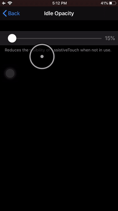Lastly Apple is giving us the opportunity to control the opacity of the “Assistive Touch” circle that is able to be moved around the perimeter of our screen when a mouse is paired to our device. To do this you navigate to Settings/ Accessibility/ Touch/ Assistive Touch and there you can find “Idle Opacity” section. Move the slider as you see fit with the minimum amount you can make it at the time of this post being 15%.