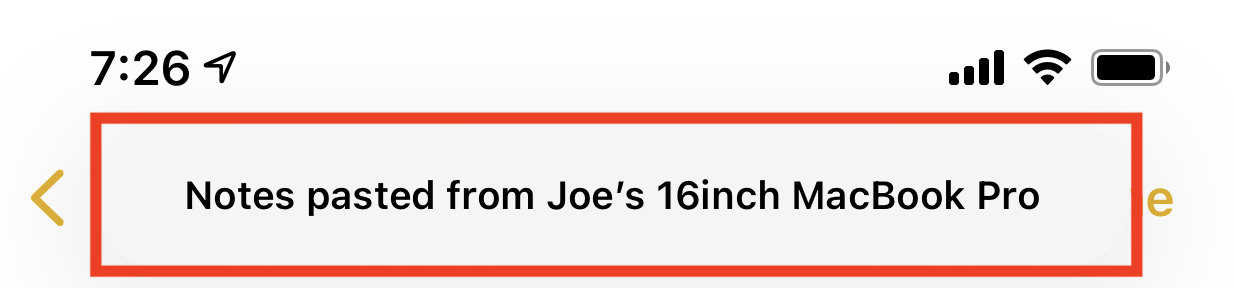 So if I meet the requirements from above with my devices and I want to grab some text from my Mac on my iPhone, I simply select the text on my Mac, select “copy” or (Command + C), and go over to my iPhone, hold down in text field and select “paste”. Boom there we have it. You will also get a notification stating the text was pasted from your Macs name. Now this works across all sorts of Apps. It also works quite well if passwords if for some reason you are not using a password management system such as iCloud Keyboard, or 1Password.